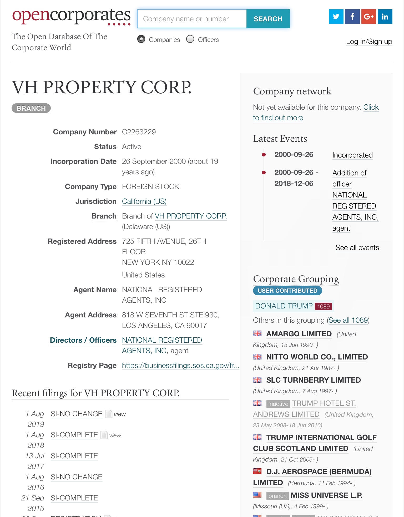 VH Property Corporation at Open Corporates database https://opencorporates.com/companies/us_ca/C2263229